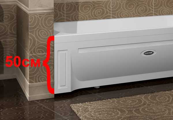 - высота от пола с ножками должна составлять 60 см. Установка изделия на этой высоте позволяет безопасно попасть в ванну и легко выбраться из нее;