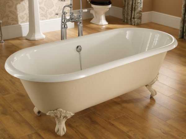 Чугунная ванна является самой тяжелой. Она несколько часов сохраняет тепло налитой в нее воды. Установка изделия требует значительных физических усилий. Монтаж идет с помощью чугунных опор, которые обычно жестко прикреплены к корпусу. Эта модель очень устойчива, ее можно ставить в любом месте квартиры. Высота установки ванны не регулируется. Если есть необходимость приподнять ее, придется подставлять под опорные ножки деревянные или иные подкладки.