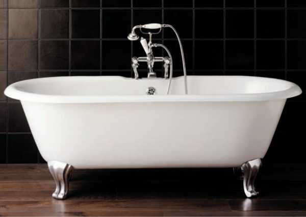 Чугунная сантехника наоборот очень тяжелая. Поэтому емкость из чугуна обычно стоит на литых опорах, жёстко фиксирующихся на её корпусе. Чугуну в отличие от стали требуется больше времени для прогревания, зато потом вода в чугунных емкостях долго не остывает. От своих предшественниц сегодняшние чугунные ванны отличаются тем, что сделаны из пятимиллиметрового чугуна и оснащены ножками с винтовой резьбой, что значительно облегчает их монтаж. И если вас, к примеру, не устраивает высота чугунной ванны с ножками, то ее легко можно изменить.