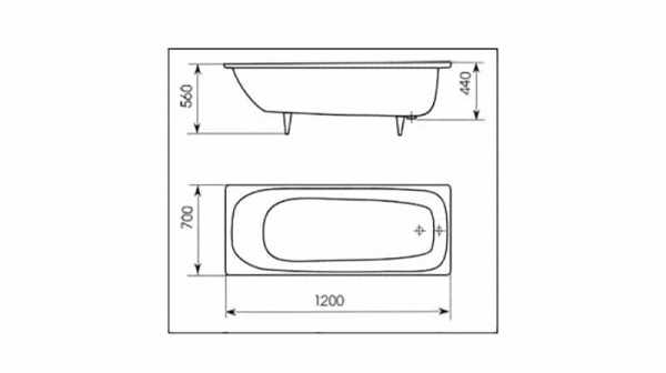 Отечественные модели имеют размеры 150×70 см, большинство импортных моделей вписываются в размер 180×80 см. Но практически все они оборудованы ножками. Ножки имеют ресурс, дающий возможность высоты установки ванны от пола на расстоянии в 60 см до верхней кромки бортика.