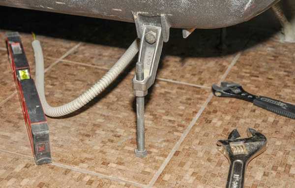 Корректировка высоты ванны из стали от пола