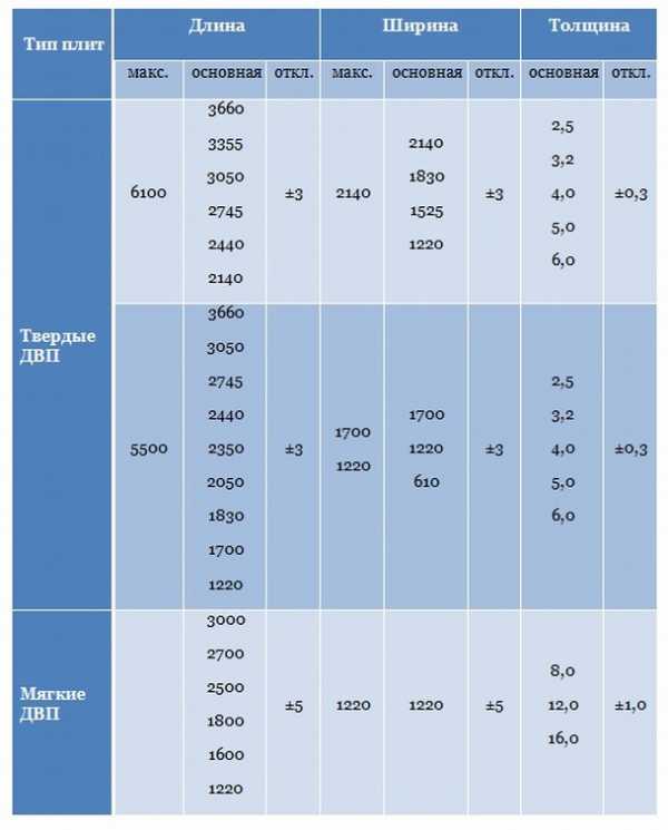 Стандартные размеры листа ДВП — Полезные советы