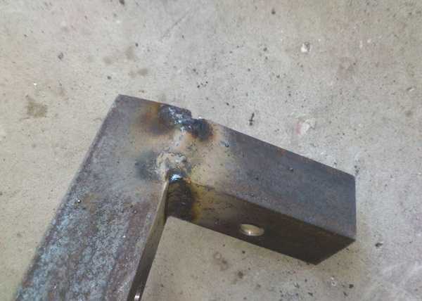 Для крепления держателя к платформе, фиксируем уголок 50×50 мм, равный ширине подставки. К нему в вертикальном положении привариваем еще один уголок такого же сечения высотой 17 см.