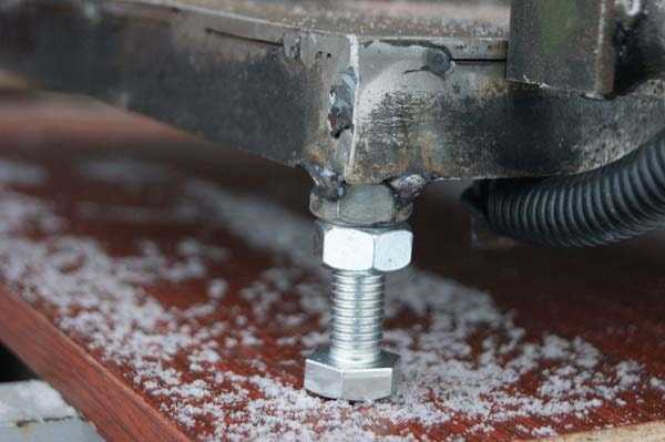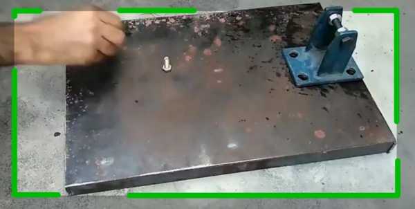 Чтобы удобно прикручивать и откручивать детали станка, гайки под низом приварены к листу.