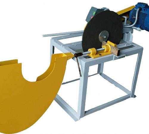 Судя по названию, вы можете понять, что этот отрезной станок оборудован единственным режущим инструментом — пильным диском. Из этого следует, что такой самодельный отрезной станок по металлу имеет по сравнению с другими меньшую производительность. Для вырезания заготовки под деталь для рамного профиля, нужно совершать не одну операцию, а две.