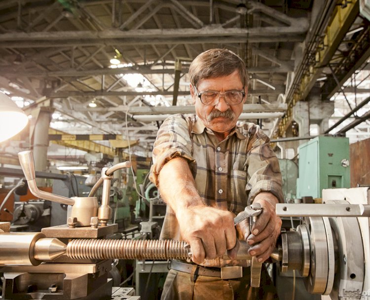 Π Π°Π±ΠΎΡΠΈΠΉ Π²ΡΡΠ°ΡΠΈΠ²Π°Π΅Ρ Π΄Π΅ΡΠ°Π»Ρ Π½Π° ΡΡΠ°Π½ΠΊΠ΅. ΠΠ°Π²ΠΎΠ΄, Π°Π²ΠΈΠ°ΡΡΡΠΎΠ΅Π½ΠΈΠ΅, ΠΈΠ½ΡΡΡΡΠΌΠ΅Π½ΡΡ, ΡΡΠ°Π½ΠΊΠΈ, ΠΏΡΠΈΠ±ΠΎΡΡ, Π»Π΅ΠΊΠ°Π»ΠΎ,…