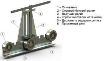 ΠΠ΄Π½Π° ΠΈΠ· ΠΊΠΎΠ½ΡΡΡΡΠΊΡΠΈΠΉ ΠΏΠΎΠ·Π²ΠΎΠ»ΡΠ΅Ρ Π²ΡΠΏΠΎΠ»Π½ΡΡΡ ΡΠ°Π΄ΠΈΠ°Π»ΡΠ½ΠΎΠ΅ ΡΠ³ΠΈΠ±Π°Π½ΠΈΠ΅ ΠΏΡΡΠΌΠΎΡΠ³ΠΎΠ»ΡΠ½ΡΡ ΠΏΡΠΎΡΠΈΠ»ΡΠ½ΡΡ ΡΡΡΠ± Π±Π»Π°Π³ΠΎΠ΄Π°ΡΡ ΠΈΡΠΏΠΎΠ»ΡΠ·ΠΎΠ²Π°Π½ΠΈΡ Π΄Π²ΡΡ ΡΠΎΠ»ΠΈΠΊΠΎΠ², ΠΎΠ΄ΠΈΠ½ ΠΈΠ· ΠΊΠΎΡΠΎΡΡΡ ΡΠ²Π»ΡΠ΅ΡΡΡ ΠΏΠΎΠ΄Π²ΠΈΠΆΠ½ΡΠΌ, Π° Π΄ΡΡΠ³ΠΎΠΉ β ΠΎΠΏΠΎΡΠ½ΡΠΌ (Π½Π°ΠΏΡΠ°Π²Π»ΡΡΡΠΈΠΌ). ΠΠ΅ΡΠΎΡΠΌΠ°ΡΠΈΡ Π·Π°Π³ΠΎΡΠΎΠ²ΠΊΠΈ ΠΏΠΎ Π½ΡΠΆΠ½ΠΎΠΌΡ ΡΠ°Π΄ΠΈΡΡΡ ΠΎΡΡΡΠ΅ΡΡΠ²Π»ΡΠ΅ΡΡΡ Π½Π°ΠΆΠ°ΡΠΈΠ΅ΠΌ ΠΈ ΠΏΠ΅ΡΠ΅ΠΌΠ΅ΡΠ΅Π½ΠΈΠ΅ΠΌ ΡΠ°Π±ΠΎΡΠ΅Π³ΠΎ ΡΠΎΠ»ΠΈΠΊΠ° Π²ΠΎΠΊΡΡΠ³ Π½Π°ΠΏΡΠ°Π²Π»ΡΡΡΠ΅Π³ΠΎ. ΠΠΎΡΠΏΡΡ ΡΡΡΡΠΎΠΉΡΡΠ²Π° ΠΈΠ·Π³ΠΎΡΠ°Π²Π»ΠΈΠ²Π°ΡΡ ΠΈΠ· ΡΡΠ°Π»ΡΠ½ΠΎΠ³ΠΎ Π»ΠΈΡΡΠ° ΡΠΎΠ»ΡΠΈΠ½ΠΎΠΉ Π΄ΠΎ 8 ΠΌΠΌ ΠΈ ΠΌΠ΅ΡΠ°Π»Π»ΠΈΡΠ΅ΡΠΊΠΈΡ ΡΠ³ΠΎΠ»ΠΊΠΎΠ². Π§ΡΠΎΠ±Ρ ΠΈΠ·Π±Π΅ΠΆΠ°ΡΡ Π½Π΅ΠΏΡΠΎΠΈΠ·Π²ΠΎΠ»ΡΠ½ΠΎΠ³ΠΎ ΡΠΌΠ΅ΡΠ΅Π½ΠΈΡ Π·Π°Π³ΠΎΡΠΎΠ²ΠΊΠΈ, ΠΏΠ΅ΡΠ΅Π΄ ΡΠ³ΠΈΠ±Π°Π½ΠΈΠ΅ΠΌ Π΅Ρ Π·Π°ΠΆΠΈΠΌΠ°ΡΡ ΠΌΠ΅ΠΆΠ΄Ρ Π½Π΅ΠΏΠΎΠ΄Π²ΠΈΠΆΠ½ΡΠΌ ΡΠΎΠ»ΠΈΠΊΠΎΠΌ ΠΈ ΡΠΏΠ΅ΡΠΈΠ°Π»ΡΠ½ΠΎ ΡΡΡΠ°Π½ΠΎΠ²Π»Π΅Π½Π½ΡΠΌ ΡΠΏΠΎΡΠΎΠΌ.