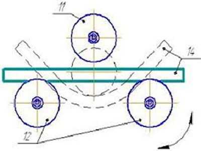 - ΠΌΠΎΠ½ΡΠΈΡΡΠ΅ΡΡΡ ΠΎΡΡ Π²ΡΠ°ΡΠ΅Π½ΠΈΡ ΠΈ Π΄Π²Π° ΡΠΈΠ»ΠΈΠ½Π΄ΡΠΈΡΠ΅ΡΠΊΠΈΡ Π²Π°Π»ΠΈΠΊΠ°. Π Π°ΡΡΡΠΎΡΠ½ΠΈΠ΅ ΠΌΠ΅ΠΆΠ΄Ρ Π²Π°Π»ΠΈΠΊΠ°ΠΌΠΈ ΠΎΠΏΡΠ΅Π΄Π΅Π»ΡΠ΅Ρ ΡΠ°Π΄ΠΈΡΡ Π²ΠΎΠ·ΠΌΠΎΠΆΠ½ΠΎΠ³ΠΎ ΠΈΠ·Π³ΠΈΠ±Π° ΠΏΡΠΎΡΠΈΠ»Ρ. ΠΡΠ»ΠΈ ΠΏΡΠ΅Π΄ΡΡΠΌΠΎΡΡΠ΅ΡΡ Π²ΠΎΠ·ΠΌΠΎΠΆΠ½ΠΎΡΡΡ ΠΏΠ΅ΡΠ΅ΠΌΠ΅ΡΠ΅Π½ΠΈΡ ΡΠΈΠ»ΠΈΠ½Π΄ΡΠΎΠ², ΡΠΎ ΡΠ³ΠΎΠ» ΠΈΠ·Π³ΠΈΠ±Π° ΡΡΡΠ± ΠΌΠΎΠΆΠ½ΠΎ Π±ΡΠ΄Π΅Ρ ΠΈΠ·ΠΌΠ΅Π½ΡΡΡ Π² Π·Π°Π²ΠΈΡΠΈΠΌΠΎΡΡΠΈ ΠΎΡ Π½Π΅ΠΎΠ±Ρ ΠΎΠ΄ΠΈΠΌΠΎΡΡΠΈ. ΠΠ»Ρ ΡΡΠΎΠ³ΠΎ ΡΡΡΡΠΎΠΉΡΡΠ²ΠΎ ΠΎΡΠ½Π°ΡΠ°ΡΡ Π΄ΠΎΠΏΠΎΠ»Π½ΠΈΡΠ΅Π»ΡΠ½ΡΠΌΠΈ ΡΡΠΎΠΏΠΏΠ΅ΡΠ°ΠΌΠΈ;