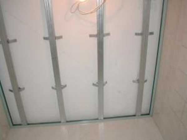Монтируем каркас из оцинкованных профилей, подробно мы разбирали его в статье подвесные потолки своими руками.