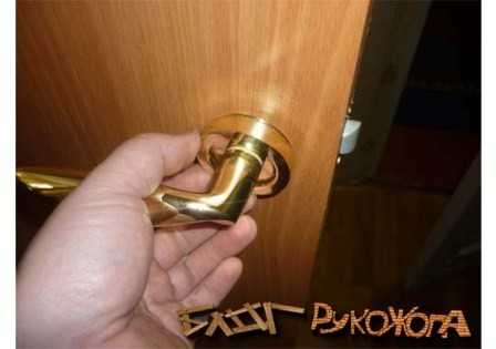 Вставляем ручку, чтобы сработала защелка.