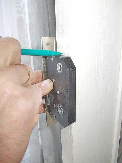 Приставляем замок вровень с дверью и делаем отметку по факту