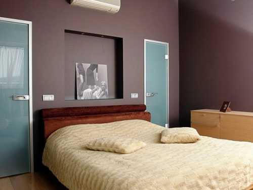 Популярное решение – сочетать цвет дверей с оттенком мебели. Если в комнате темная мебель, то изделия устанавливают такого же цвета или на несколько тонов светлее. Тонированные стеклянные вставки смягчат мрачность интерьера.