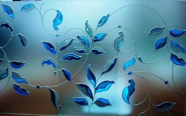 - модная пескоструйная обработка позволяет изображать на стеклянной поверхности любые узоры, достаточно подобрать нужный шаблон;
