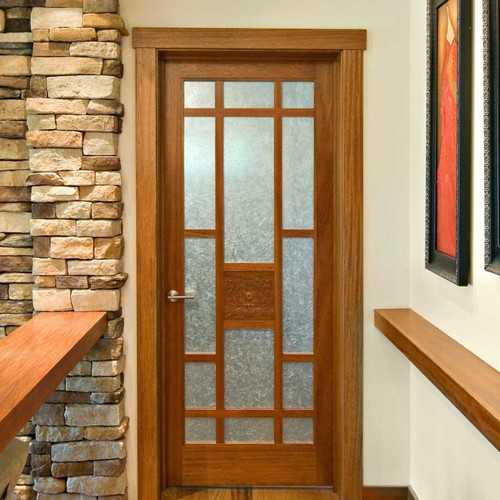 Прежде всего следует отметить использование декоративных стёкол для межкомнатных дверей. Этот материал является самым дорогим видом вставки в дверное полотно. Будет кстати сказать, что именно из-за стоимости декоративного стекла его в процессе изготовления дверных межкомнатных дверей применяют далеко не все производители. Такой материал является фактическим идеальным вариантом, так как он не требует доработки. Одной из разновидностей является рифлёное стекло. Впрочем, у декоративных вставок для дверей есть и недостаток.