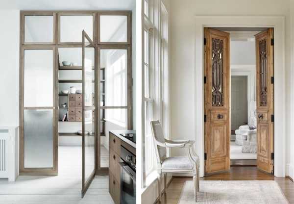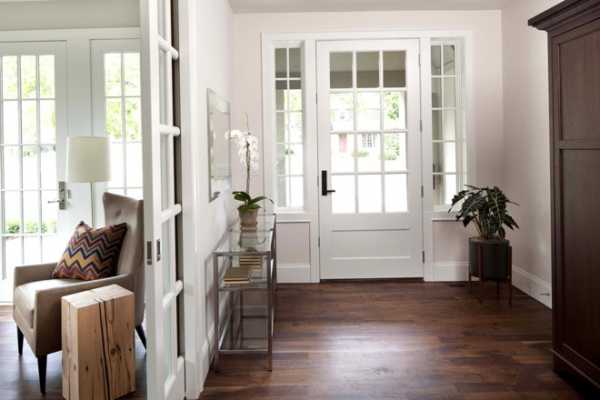 Стильное решение практикуют дизайнеры Америки и Европы. При выборе оттенка дверей не ориентируются на цвет мебели, стен или напольного покрытия. Просто подбираются изделия с прозрачными вставками, окрашенные в белый, серый цвет или с текстурой беленый дуб, бук. Чтобы интерьер приобрел целостный вид, все комнаты отделывают наличниками и широкими плинтусами такого же цвета или текстуры.