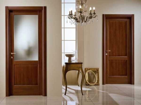 - из древесины. Двери, собранные из массива, выделяются респектабельностью, прочностью, долго сохраняют изысканный вид. Стоят такие модели дорого, изготавливаются из ореха, дуба, ясеня, тика, граба. Изделия из палисандра, карельской березы, красного/черного, эбенового дерева относятся к премиум сегменту. Естественно, что такие изделия изготавливают на заказ;