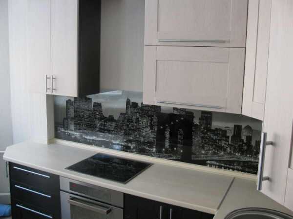 - Если рисунок на фартуке – это город, уходящая вдаль дорога, то таким образом создается перспектива, которая в свою очередь расширяет пространство комнаты. Для малогабаритных кухонь это оптимальное решение.