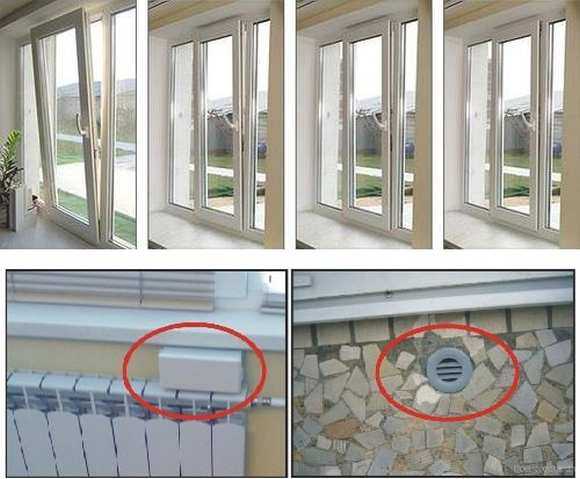 Для обеспечения естественной вентиляции необходимо проветривать помещение 4-5 раз в деньЕсли в квартире установлены современные пластиковые окна, то герметичность таких стеклопакетов составляет 100%. Поэтому, привычный годами воздухообмен в помещение меняется кардинальным образом. Теперь о притоке в квартиру свежего воздуха хозяин должен заботиться сам: проветривать помещение, использовать режим вентиляции окна. Рекомендуется проводить проветривание помещения до четырех раз в день по пять минут с распахнутой створкой.