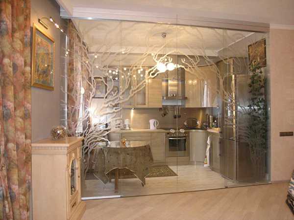 Чаще всего в стекло заключают зону кухни и спальни именно из практических соображений. Стекло пропускает свет, но сильно ограничивает звуки и запахи.