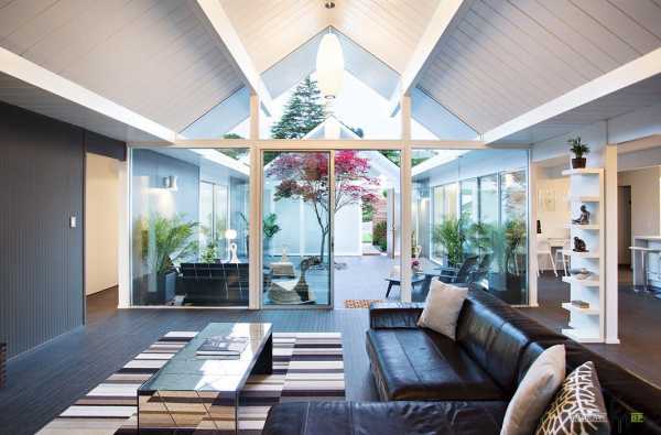 Согласитесь, дом со стеклянной стеной в качестве перегородки для разделения комнаты на зоны или огромная прозрачная стены, выходящая на задний двор с оригинально обустроенным ландшафтом никого не оставит равнодушным.