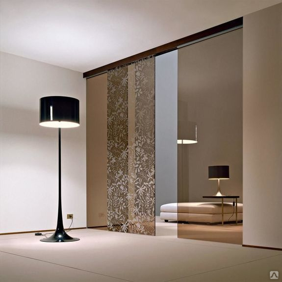 Раздвижная система | Удобный и распространенный вариант, позволяющий решить сразу несколько задач – зонирование помещения, организация входа и выхода. | |