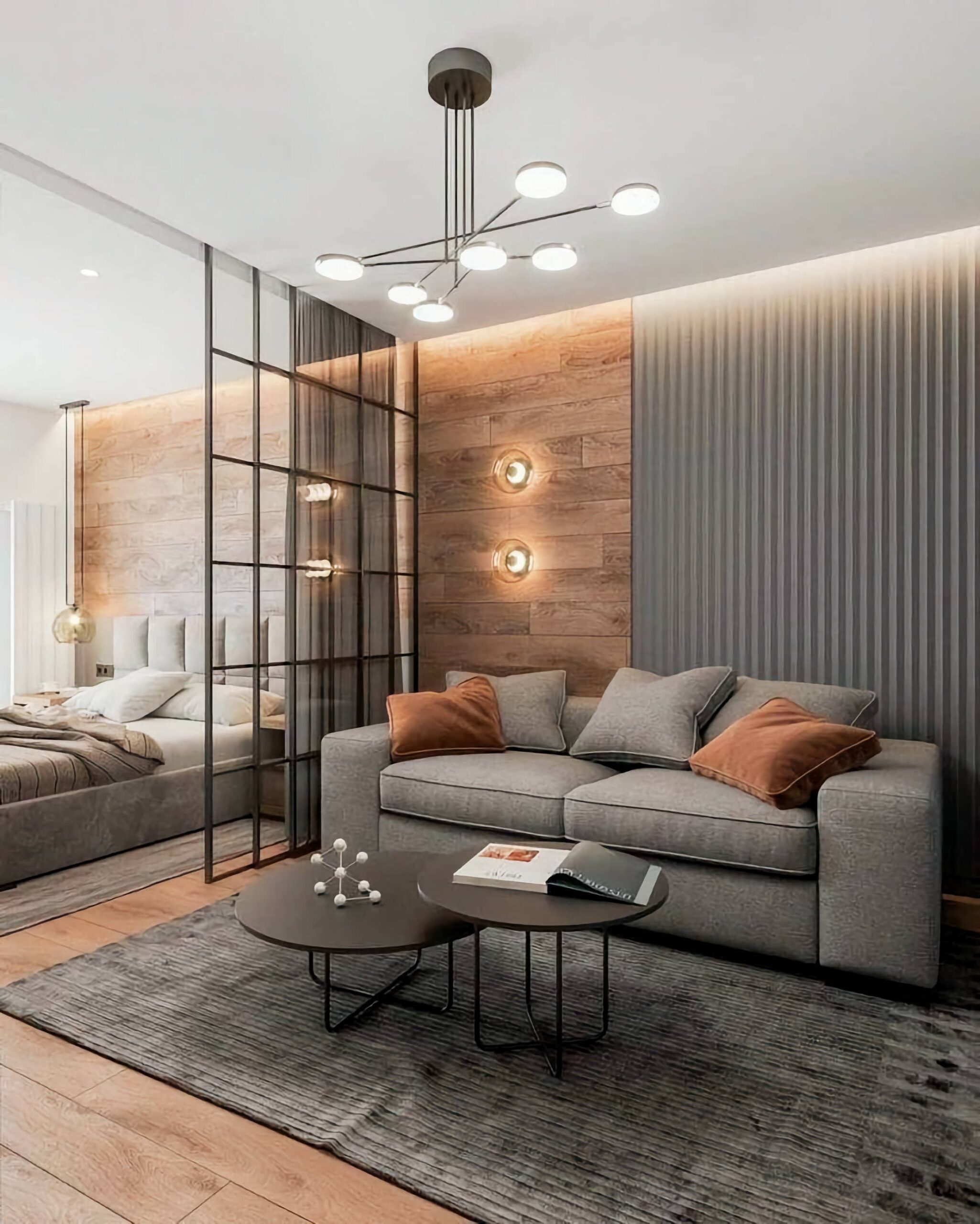 раздвижных перегородок дает возможность трансформировать помещение в зависимости от ситуации, что особенно важно для небольшого пространства.