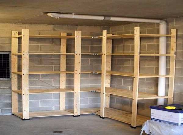 Деревянные полки в гараже, сделанные своими руками