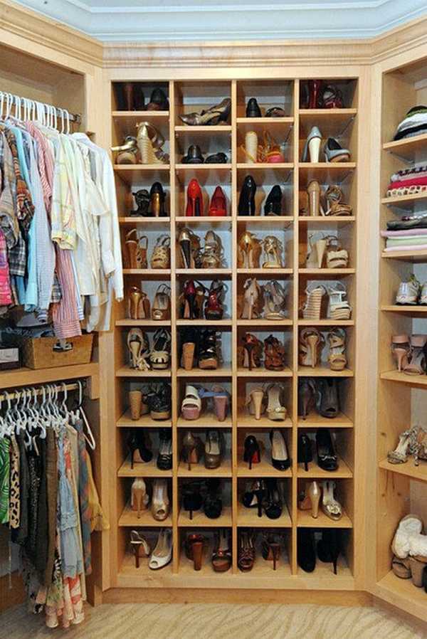 - удобнее хранить обувь на полках под уклоном;