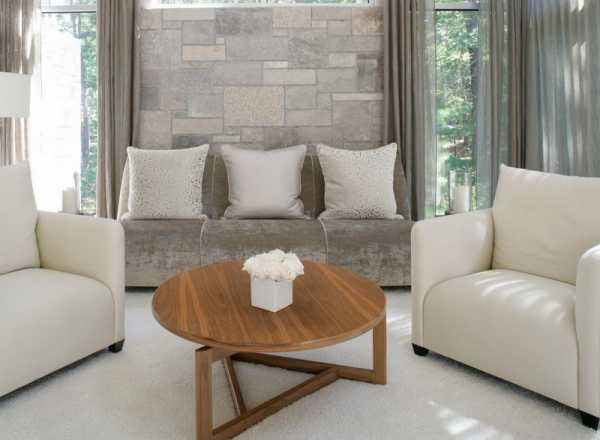 Дизайн интерьера гостиной со стеной из натурального облицовочного камняРечная Галька