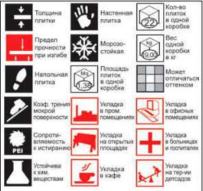 Существует стандартный набор значков, которые обозначают, какими свойствами обладает данный вид плитки. Соответствующая этикетка находится на каждой упаковке. Здесь имеет значение даже цвет этикетки – при том условии, что здесь же упоминаются стандарты UNI EN либо EN90, полученные производителем.
