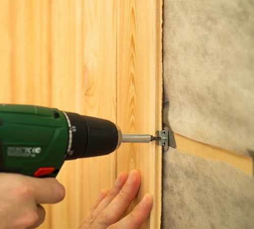 Крепят изделия к брускам разными способами. Длина одного края панели на пазовой стороне больше другой. Благодаря этому упрощается ввинчивание шурупов, забивание гвоздей или применение степлера для присоединения отдельных частей.