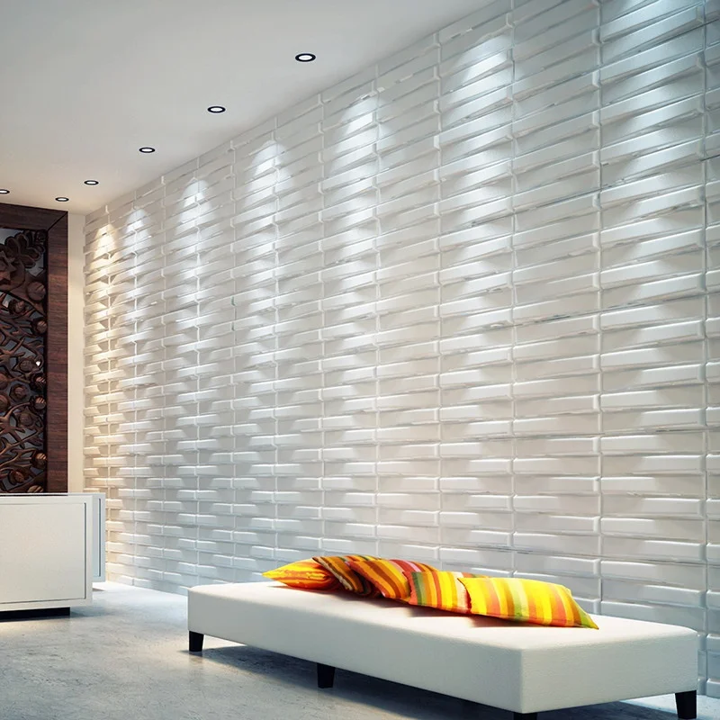 Гипсовые панели выглядят оригинально, создают дополнительную звуко- и теплоизоляцию, долговечны, пожаробезопасны. Но из-за большого веса монтировать их можно не на все виды поверхностей, а лишь на прочные бетонные или кирпичные стены, стены из газобетона или двойного гипсокартона. Перед установкой гипсовой панели стену нужно тщательно подготовить к монтажу — выровнять и оштукатурить.