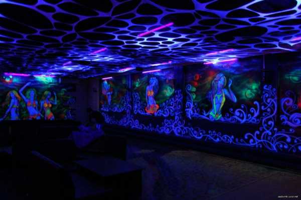Такое решение появилось совсем недавно, но уже получило большой спросОтличие светящихся флуоресцентных трехмерных моделей от привычных с 3D рисунков в простоте работы по их нанесению на стены и потолок. Это не занимает много времени. Все преимущества вида выражены в следующем.