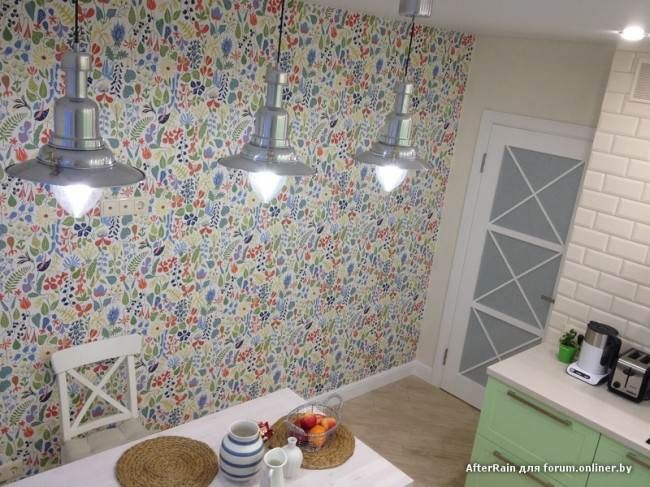 Насыщенные темные оттенки мебели придадут кухне динамичности и контраста, а светлая гамма цветов создаст нежную гармонию в помещении. Для отделки стен можно использовать водостойкую краску соответствующего цвета, необычную декоративную штукатурку, обои с цветочным или геометричым принтом.