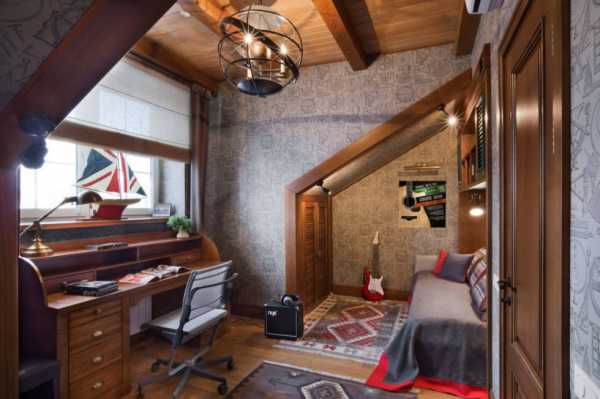 Если некоторые стропила проступают сквозь стены внутрь мансарды, то их можно оформить как декоративные элементы и даже использовать в виде турника для подвешивания гамака, качелей, люстры и прочих приспособлений.