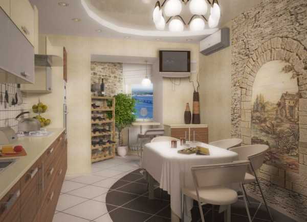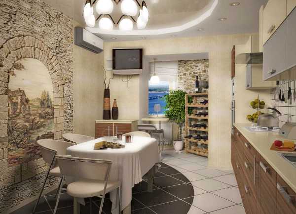 В интерьер кухни можно и даже нужно совмещать различные отделочные материалы