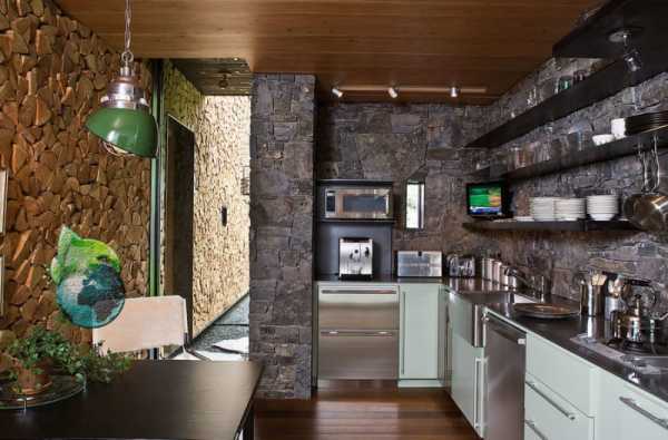 Декоративным камнем можно покрыть все стены кухни или выделить им какую-либо зону, всё зависит от вашего вкуса и кошелька