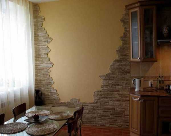 Для ремонта стен на кухне также отлично подойдёт и такой вариант. В основу для создания гибкого камня входит горная порода под наименованием песчаник. Не толстый слой такого материала покрывают на гибкую часть — стеклохолст. В последствии выходит готовый отделочный материал, который несёт уже имя «гибкий камень».