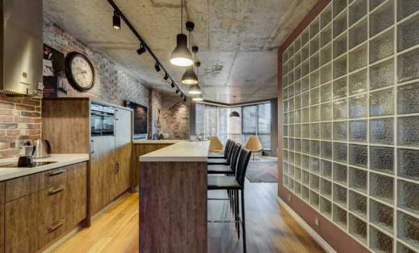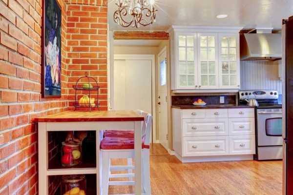 Кирпичная отделка подойдет для кухни в стиле лофт, при том кирпич вовсе не должен быть настоящим