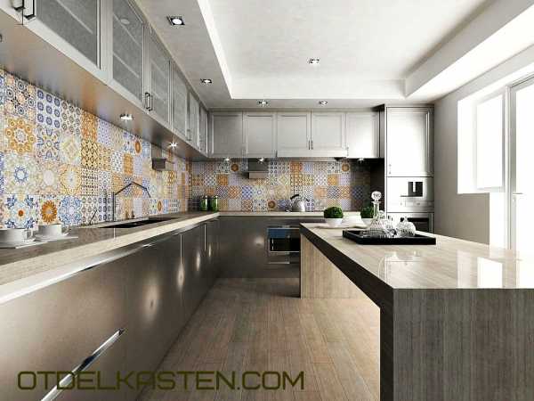 Мозаика всегда будет выглядеть эффектно и современном. Детали мозаики могут быть сделаны из керамики, стекла, природного камня, металла или дерева. С помощью этого приема можно внести разнообразие в интерьер, однако к выбору нужно подойти очень тщательно, особенно определяясь с цветом. Подобрать мозаику нужно в тон полу, потолку или кухонной мебели.