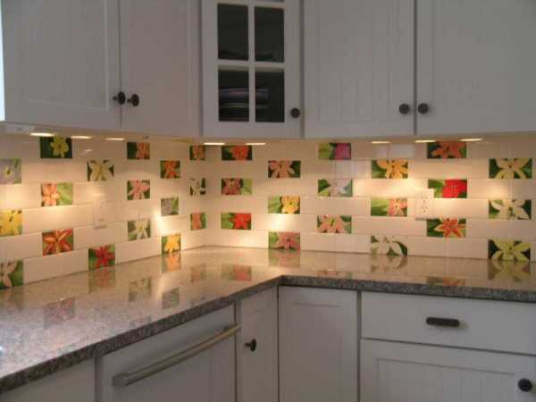 Плитка может быть, как разноцветной, так и однотонной. Можно выложить различные необычные узоры, применяя насыщенные яркие цвета. Это добавит интерьеру свежести и бодрости. Если плитка однотонная, можно выложить ряд плиток с узором или декор в одну полоску – такой акцент оживит интерьер и сделает оформление фартука более интересным.