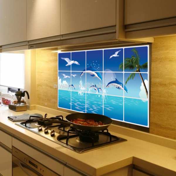 Это простой, но в то же время эффектный способ украшения стен в кухне. Существуют виниловые и очень распространенные зеркальные наклейки. Использование таких наклеек привносит и уют, и яркие краски, что в целом способствует положительной атмосфере.