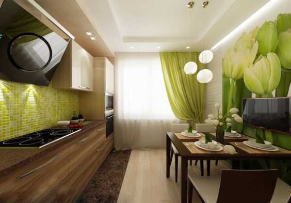 Салатовые обои на кухне