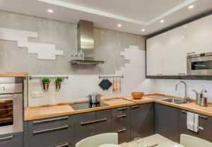 - Зонирование. Оформление части помещения: кухни, гостиной и т. д. Отделку больших площадей (стен всей комнаты) следует делать только в больших помещениях с высоким потолком. Лучше предпочесть светлые тона, например, белый цвет.