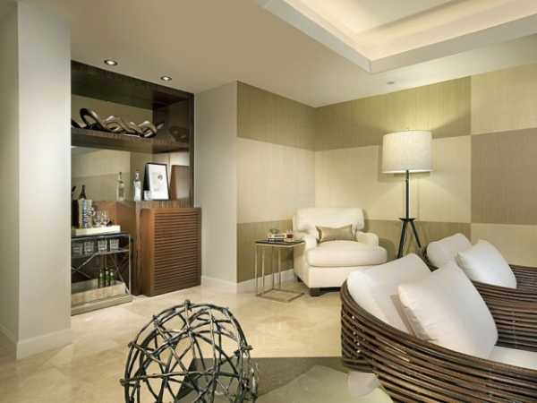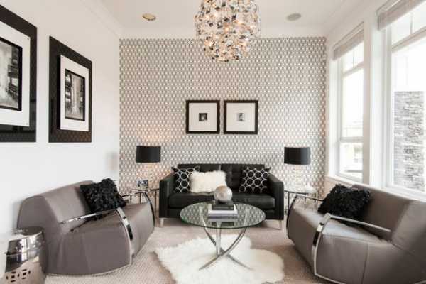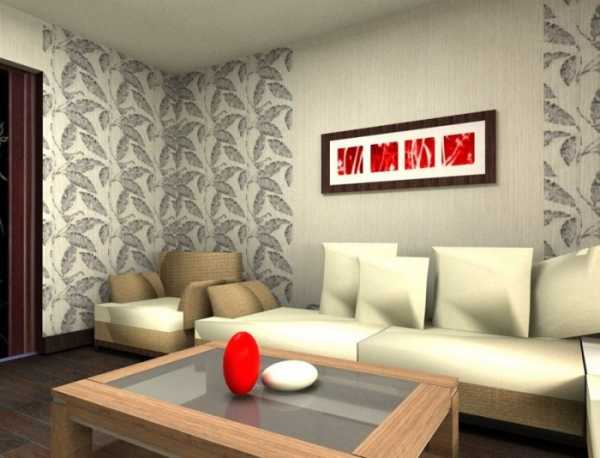 Маленькая гостиная. В комнате небольших размеров темные стены будут смотреться не только неуместно, но и зрительно сделают помещение еще меньше. Маленькую гостиную визуально увеличить поможет светлое покрытие с малозаметными узорами. Неплохой вариант – сочетание обоев с мелким рисунком и полосатыми вертикальными полотнами. Решения могут быть разными, от небольших ромбиков до неприметных орнаментов.