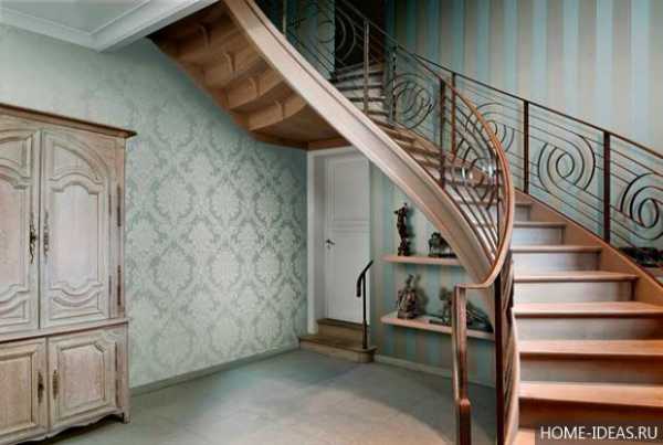 Полукруглая комната. В случае если помещение выполнено в форме полукруга, то его также лучше всего декорировать обоями двух видов. Ту часть, которая приходится на полукруг, следует оклеить однотонными обоями теплых оттенков. Остальную же часть стены лучше украсить обоями тех же тонов, но с узорами или рисунками. Такое решение органично впишется в подобный интерьер и максимально выгодно смягчит полукруг.