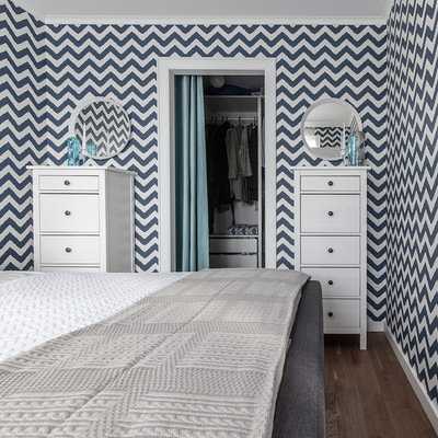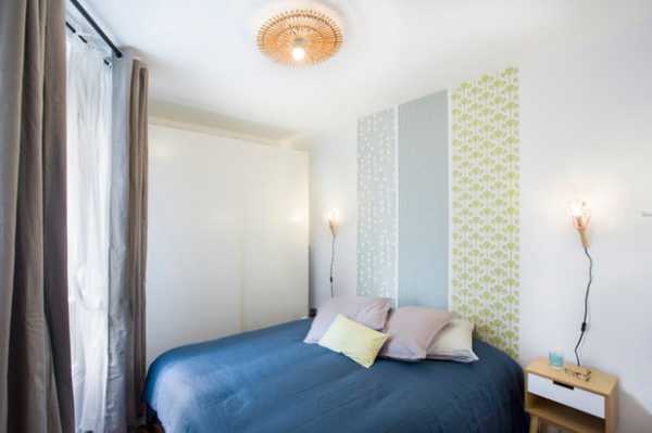 Всем, кто сомневается, советую начать с единственной стены — за изголовьем кровати. Помещение украсите, в глазах у лежащего в кровати «рябить» не будет. Но в этом случае придется поломать голову с подбором мебели (однотонной и контрастной к яркому или пестрому фону).