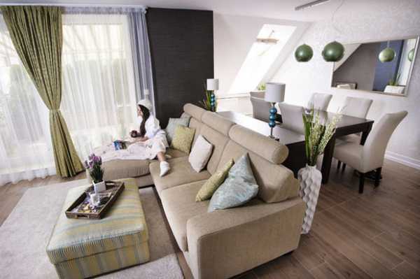 В просторном и в меру высоком помещении применима практически любая отделка. Но возникает вопрос: не будут ли стены казаться пустыми, лишая тем самым комнату значительной доли уюта? Чтобы этого избежать, прибегают к использованию комбинированной отделки. Этот же вариант применим и для «проблемных» помещений, так как грамотное комбинирование позволит скрыть недостатки и подчеркнуть достоинства.