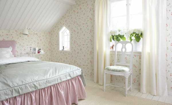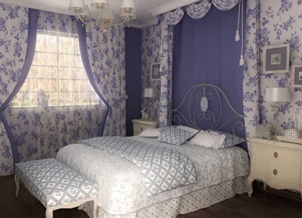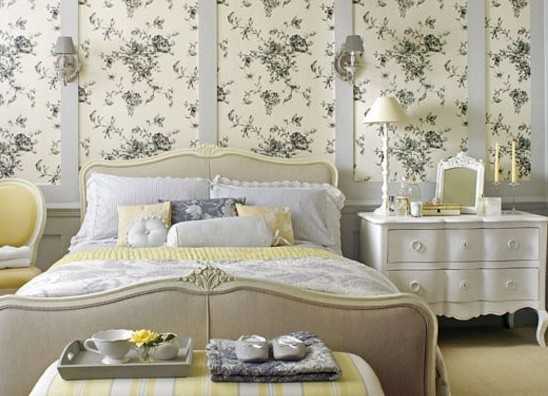 В спальне предпочтительней наклеивать бумажные обои светлых тонов. Выбирать желательно из кремовых, серых, розовых или голубых оттенков. Замечательно передает атмосферу Прованса размытый лиловый цвет.