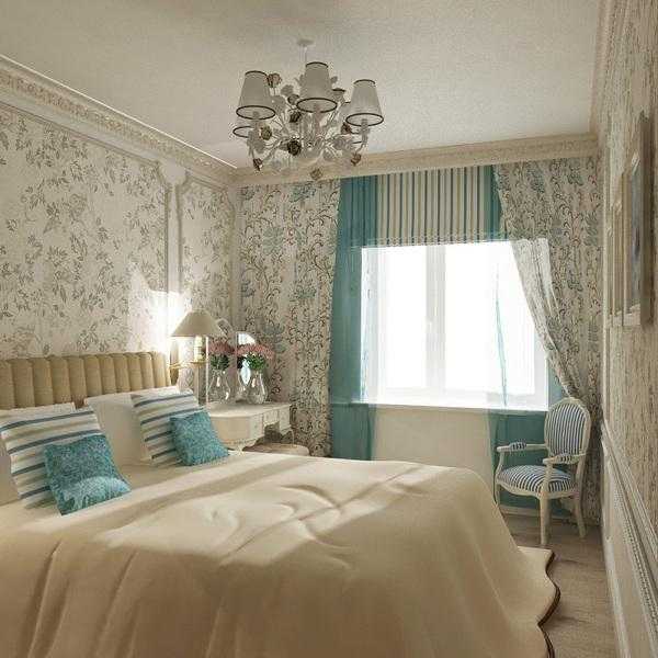 Для спальной комнаты нестандартной планировки можно использовать до четырех видов обоев-компаньонов при декорировании разных стен.
